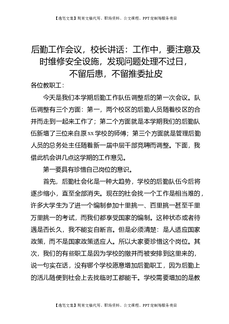 后勤工作会议,校长讲话:工作中,要注意及时维修安全设施,发现问题处理不过日,不留后患,不留推委扯皮.doc