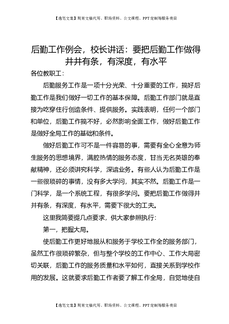 后勤工作例会,校长讲话:要把后勤工作做得井井有条,有深度,有水平.doc