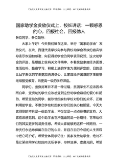 国家助学金发放仪式上,校长讲话:一颗感恩的心,回报社会,回报他人.doc