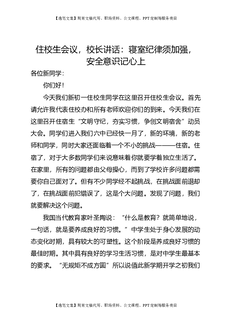 住校生会议,校长讲话:寝室纪律须加强,安全意识记心上.doc