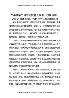 在学校第二届劳动技能大赛中,校长致辞:人间万事出艰辛,劳动是一切幸福的源泉.docx