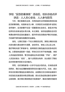 学校“反恐防暴演练”活动后,校长总结点评讲话:人人关心安全、人人参与防范.docx