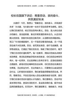 校长在国旗下讲话:尊重劳动,崇尚奋斗,共筑美好未来.docx