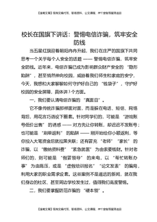 校长在国旗下讲话:警惕电信诈骗,筑牢安全防线.docx