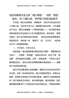 校长在教师大会上的“掏心窝话”:别盯“差生”缺点,10个暖心招,守护每个待发光的孩子.docx