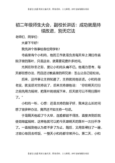 初二年级师生大会,副校长讲话:成功就是持续改进,别无它法.doc