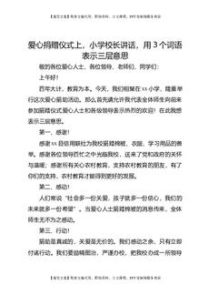 爱心捐赠仪式上,小学校长讲话,用3个词语表示三层意思.doc