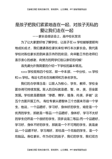 家长会座谈会上,高中校长发言:是孩子把我们紧紧地连在一起,对孩子无私的爱让我们走在一起.docx