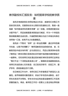 教学副校长汇报发言:如何提高学校的教学质量.docx