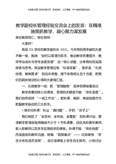 教学副校长管理经验交流会上的发言:在精准施策抓教学,凝心聚力谋发展.docx