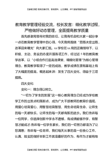 教育教学管理经验交流,校长发言:细化教学过程,严格做好动态管理,全面提高教学质量.docx