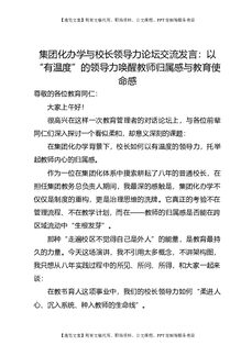 集团化办学与校长领导力论坛交流发言:以“有温度”的领导力唤醒教师归属感与教育使命感.doc