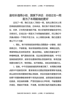 副校长值周小结,国旗下讲话:总结过去一周是为了本周能做的更好.docx