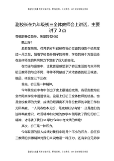 副校长在九年级初三全体教师会上讲话,主要讲了3点.doc
