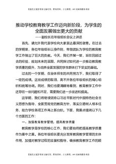 副校长在年级组长会议上讲话:推动学校教育教学工作迈向新阶段,为学生的全面发展做出更大的贡献.doc