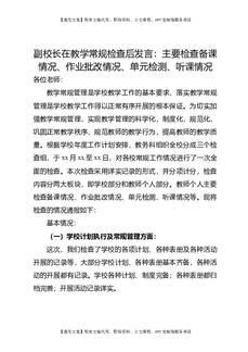 副校长在教学常规检查后发言:主要检查备课情况、作业批改情况、单元检测、听课情况.doc