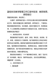 副校长在教学管理工作汇报中发言:教而有思,研而有行.doc