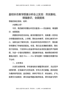 副校长在教学质量分析会上发言:夯实基础、增强意识、全面提高.doc