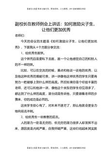 副校长在教师例会上讲话:如何激励尖子生,让他们更加优秀.doc