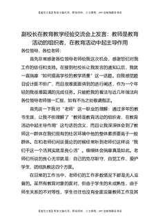 副校长在教育教学经验交流会上发言:教师是教育活动的组织者,在教育活动中起主导作用.doc