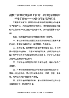 副校长在考试考务会上发言:你们的辛苦能给学生们带来一个公正公平的竞争环境.docx