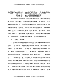 分层教学走班制,校长汇报发言:实施差异分层教学、追求质量整体提高.docx