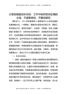 分管政教副校长讲话:工作中始终坚持正确的立场,不避重就轻、不瞻前顾后.doc