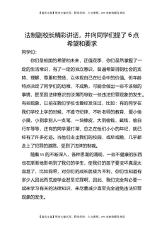 法制副校长精彩讲话,并向同学们提了6点希望和要求.doc