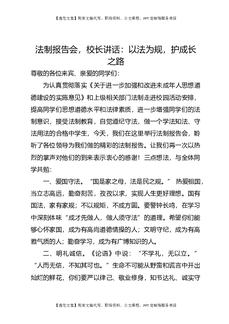 法制报告会,校长讲话:以法为规护成长之路.doc
