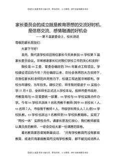 第X届家委会上,校长讲话:家长委员会的成立既是教育思想的交流好时机,是信息交流、感情融通的好机会.doc