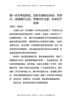 第一次月考结束后,校长在表彰会讲话:同学们,成绩属于过去,荣誉归于大家,未来在于创造.doc