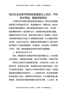 校长在全校教学常规检查通报会上讲话:严抓教学常规,赋能课堂增效.docx