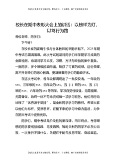 校长在期中表彰大会上的讲话:以榜样为灯,以笃行为路.doc