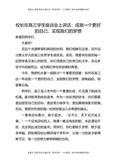 校长在高三学生座谈会上讲话:成就一个更好的自己,实现我们的梦想.docx