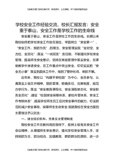 学校安全工作经验交流,校长汇报发言:安全重于泰山,安全工作是学校工作的生命线.docx