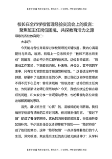 校长在全市学校管理经验交流会上的发言:聚焦班主任岗位困境,共探教育活力之源.doc