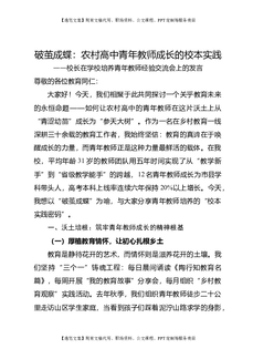 校长在学校培养青年教师经验交流会上的发言:破茧成蝶:农村高中青年教师成长的校本实践.doc