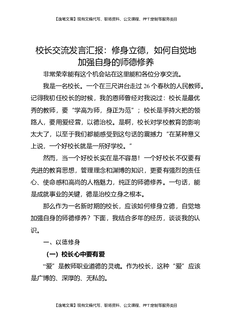 校长交流发言汇报:修身立德,如何自觉地加强自身的师德修养.docx