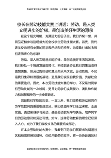 校长在劳动技能大赛上讲话:劳动,是人类文明进步的阶梯,是创造美好生活的源泉.docx