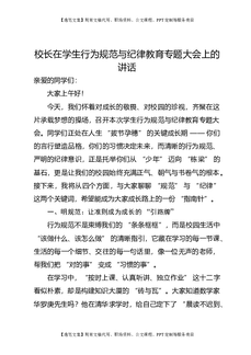 校长在学生行为规范与纪律教育专题大会上的讲话.doc