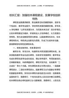 校长汇报:加强校本课程建设,发展学校创新特色.docx