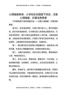 心理健康教育,小学校长在国旗下讲话:注重心理健康,珍爱宝贵青春.docx