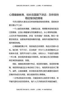 心理健康教育,校长在国旗下讲话:怎样保持稳定愉快的情绪.docx