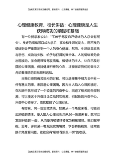 心理健康教育,校长讲话:心理健康是人生获得成功的前提和基础.docx
