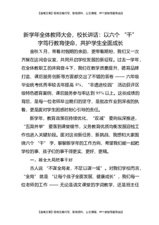 新学年全体教师大会,校长讲话:以六个“干”字笃行教育使命,共护学生全面成长.docx