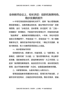 新学期全体教师会议上,校长讲话:创新机制育特色稳步发展抓提升.docx