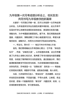 九年级第一次月考成绩分析会上,校长发言:共同书写九年级教学的新篇章.docx