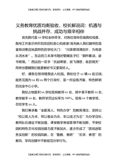 义务教育优质均衡验收,校长解说词:机遇与挑战并存,成功与艰辛相伴.docx