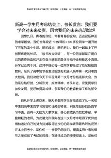 新高一学生月考总结会上,校长发言:我们要学会对未来负责,因为我们的未来光明灿烂.docx