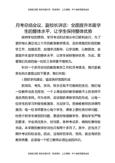 月考总结会议,副校长讲话:全面提升本届学生的整体水平,让学生保持整体优势.docx